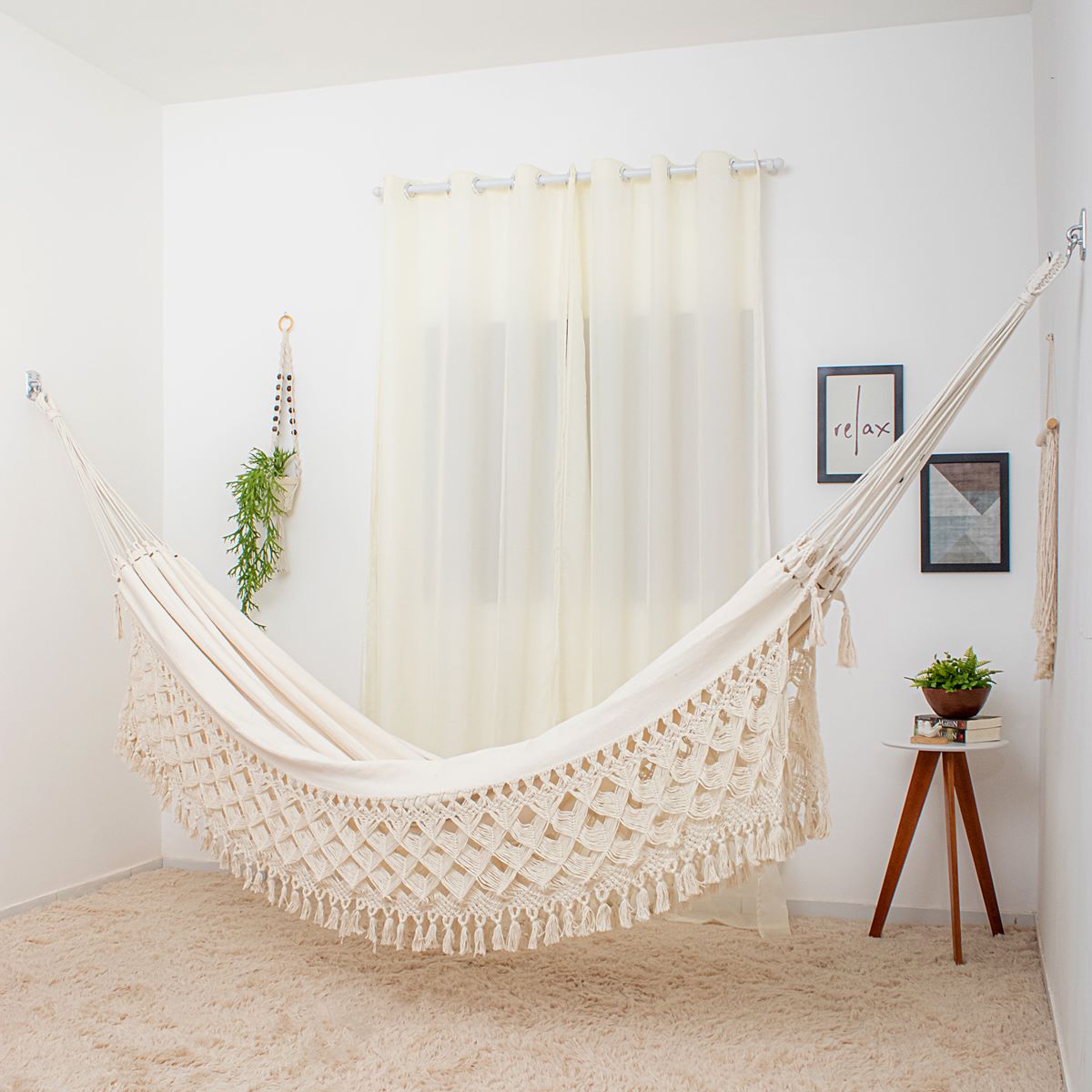 Beige Hammock With Handcrafted Macramé – 165in x 65 in